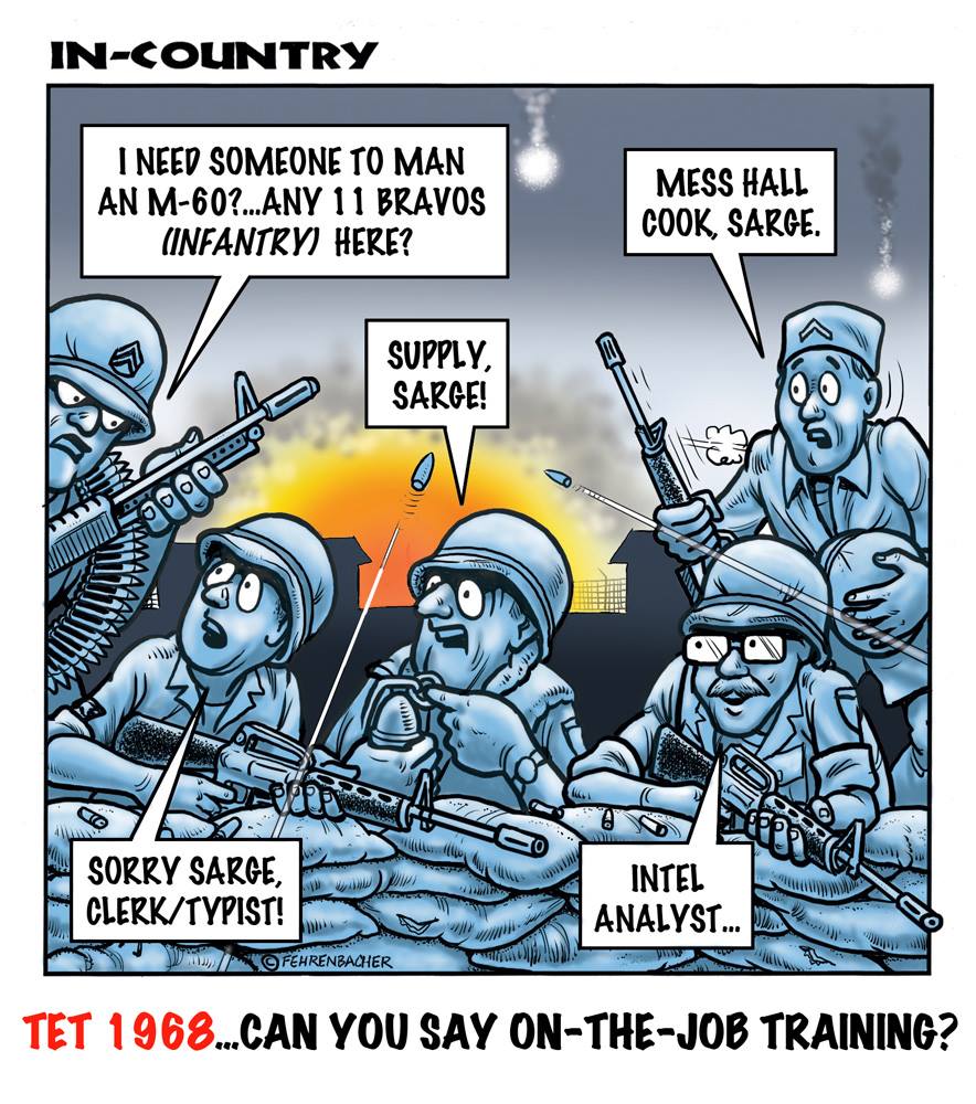 Phil enlisted in the Army in 1965 where you served for years in Vietnam. He became a graphic designer and has worked for the state of Oregon for 26 years. He retired in 2003 and started the Cartoon "In-Country". The cartoons reflect his experiences during his tour of duty in South Vietnam.