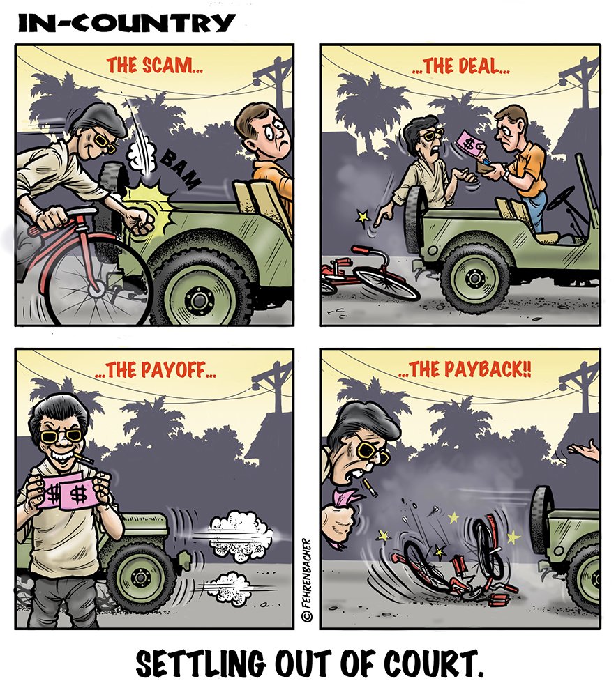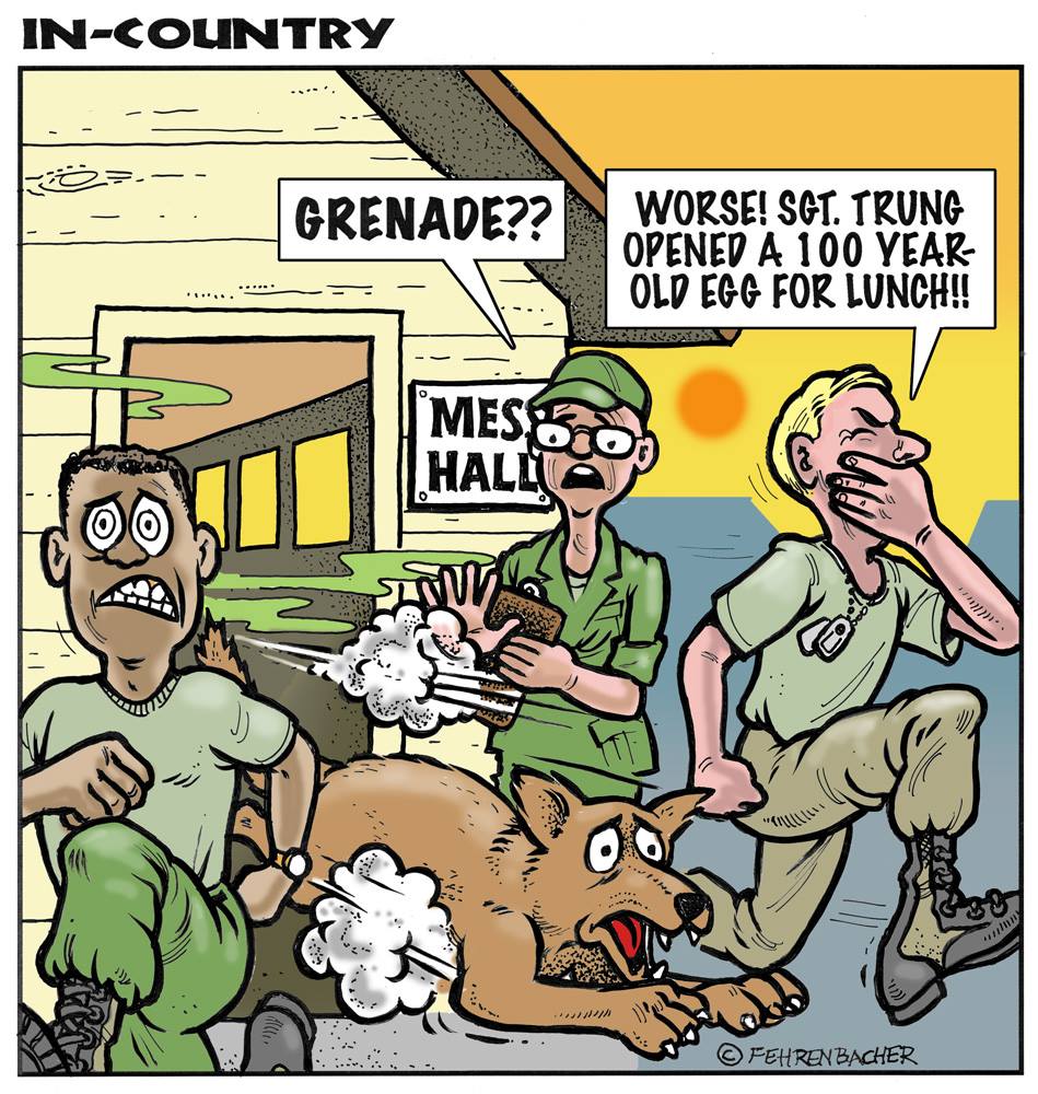 Phil enlisted in the Army in 1965 where you served for years in Vietnam. He became a graphic designer and has worked for the state of Oregon for 26 years. He retired in 2003 and started the Cartoon "In-Country". The cartoons reflect his experiences during his tour of duty in South Vietnam.