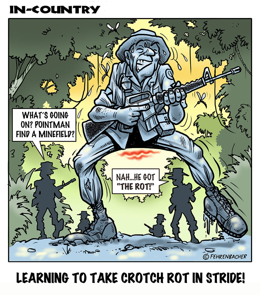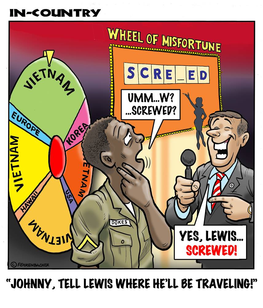 Phil enlisted in the Army in 1965 where you served for years in Vietnam.  He became a graphic designer and has worked for the state of Oregon for 26 years.  He retired in 2003 and started the Cartoon "In-Country".  The cartoons reflect his experiences during his tour of duty in South Vietnam.