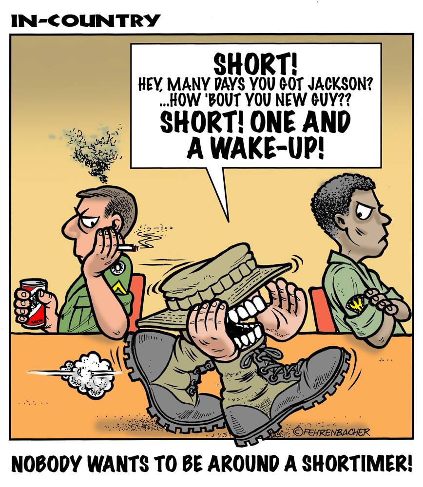 Phil enlisted in the Army in 1965 where you served for years in Vietnam. He became a graphic designer and has worked for the state of Oregon for 26 years. He retired in 2003 and started the Cartoon "In-Country". The cartoons reflect his experiences during his tour of duty in South Vietnam.