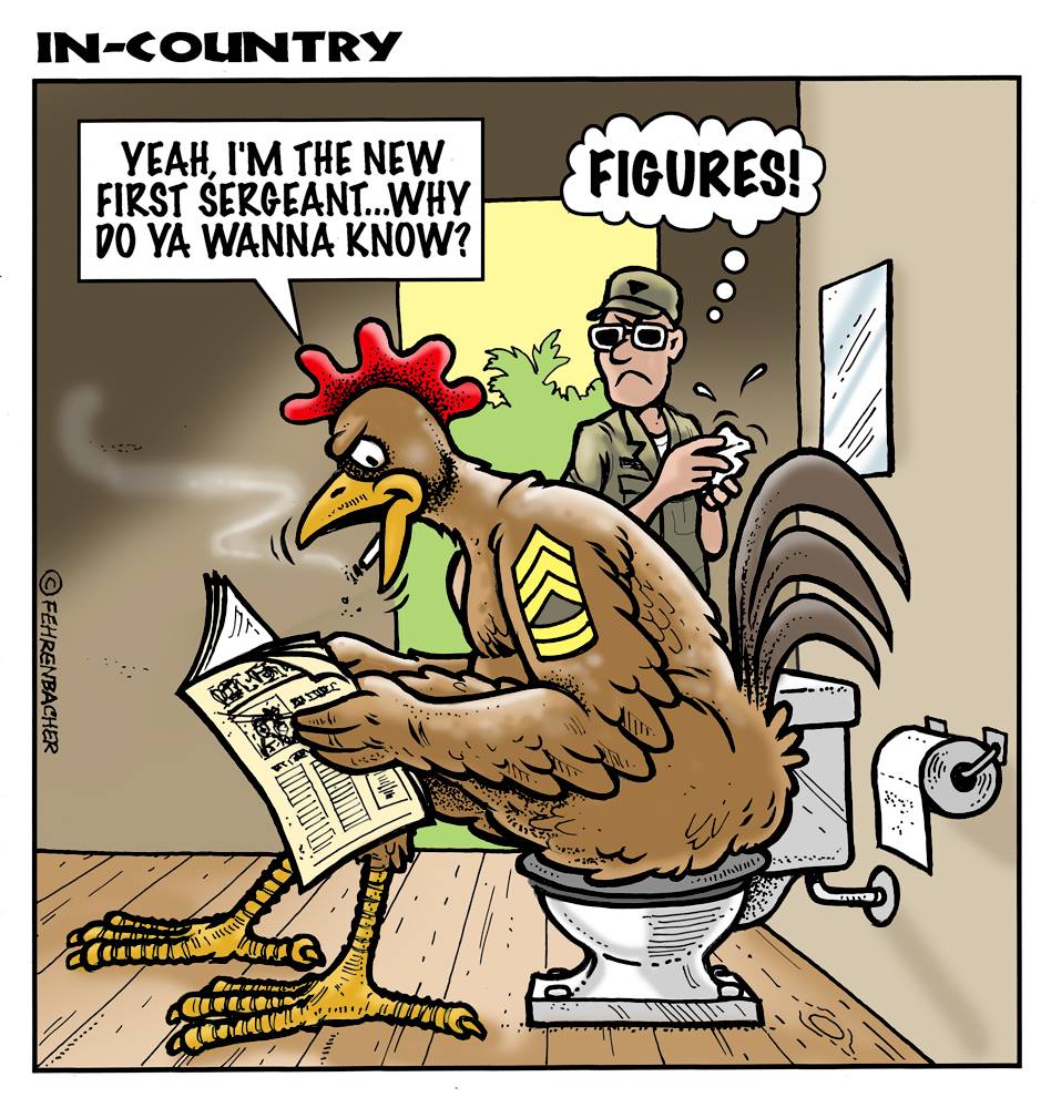 Phil enlisted in the Army in 1965 where you served for years in Vietnam.  He became a graphic designer and has worked for the state of Oregon for 26 years.  He retired in 2003 and started the Cartoon "In-Country".  The cartoons reflect his experiences during his tour of duty in South Vietnam.