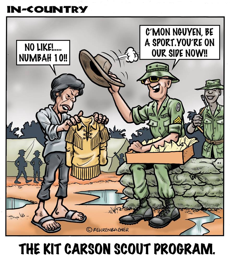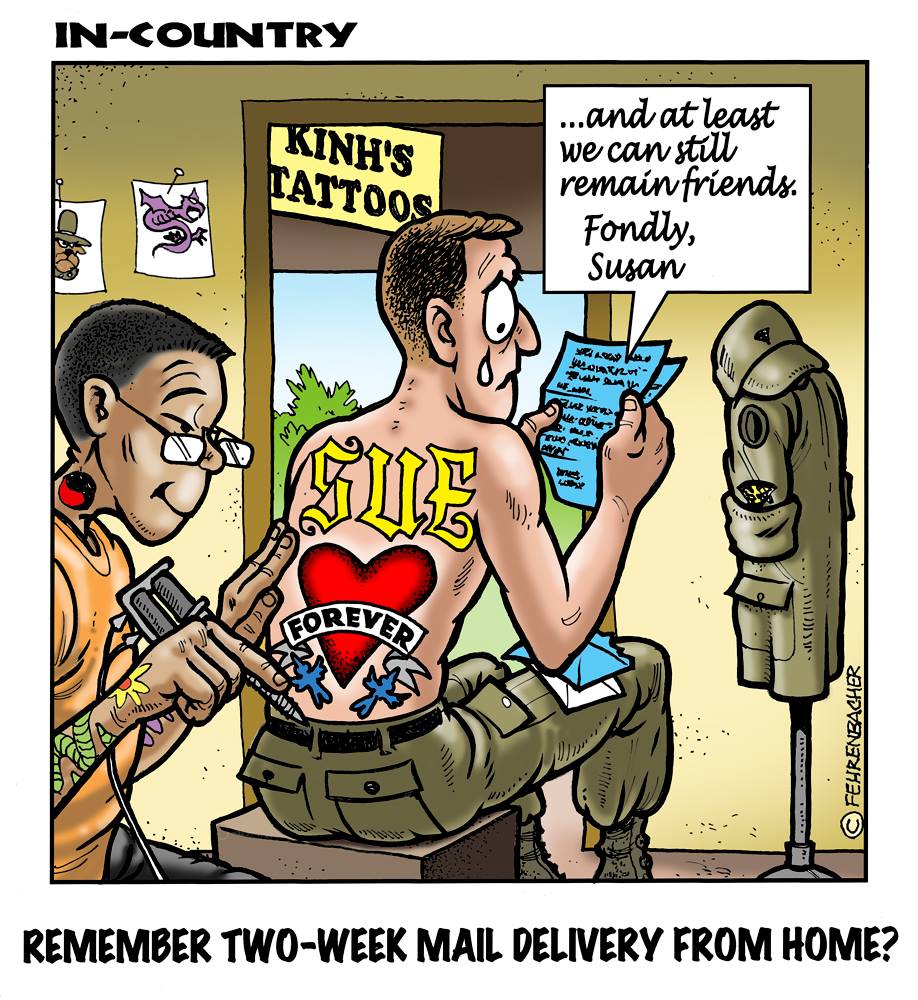 Phil enlisted in the Army in 1965 where you served for years in Vietnam. He became a graphic designer and has worked for the state of Oregon for 26 years. He retired in 2003 and started the Cartoon "In-Country". The cartoons reflect his experiences during his tour of duty in South Vietnam.